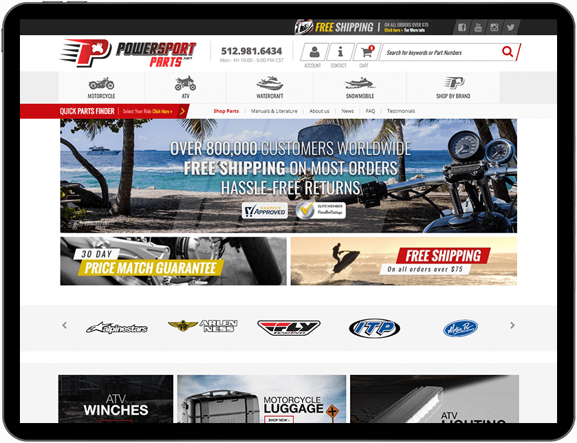 According to recent research, although 80% of customers search motorcycle parts online, 75% feel more confident making the purchase in-store. Make sure you have the correct vehicle search and product merchandising available on your online store so that you can sky rocket your in-store foot traffic and sales.