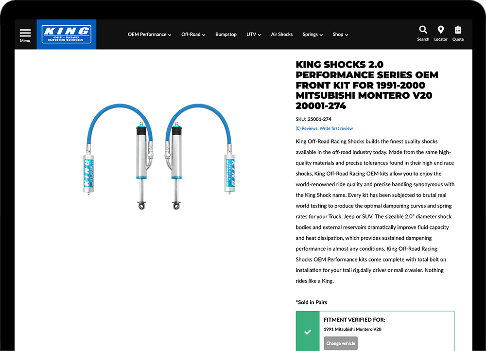 King Shocks reported increased sales, as well as better product awareness and recognition. The site design was drastically improved which added credibility to their product and sales efforts. The checkout process was notably faster, with fewer empty carts and lost sales. The CMS was easier to add products and accessories, thus saving learning curve time and man hours.