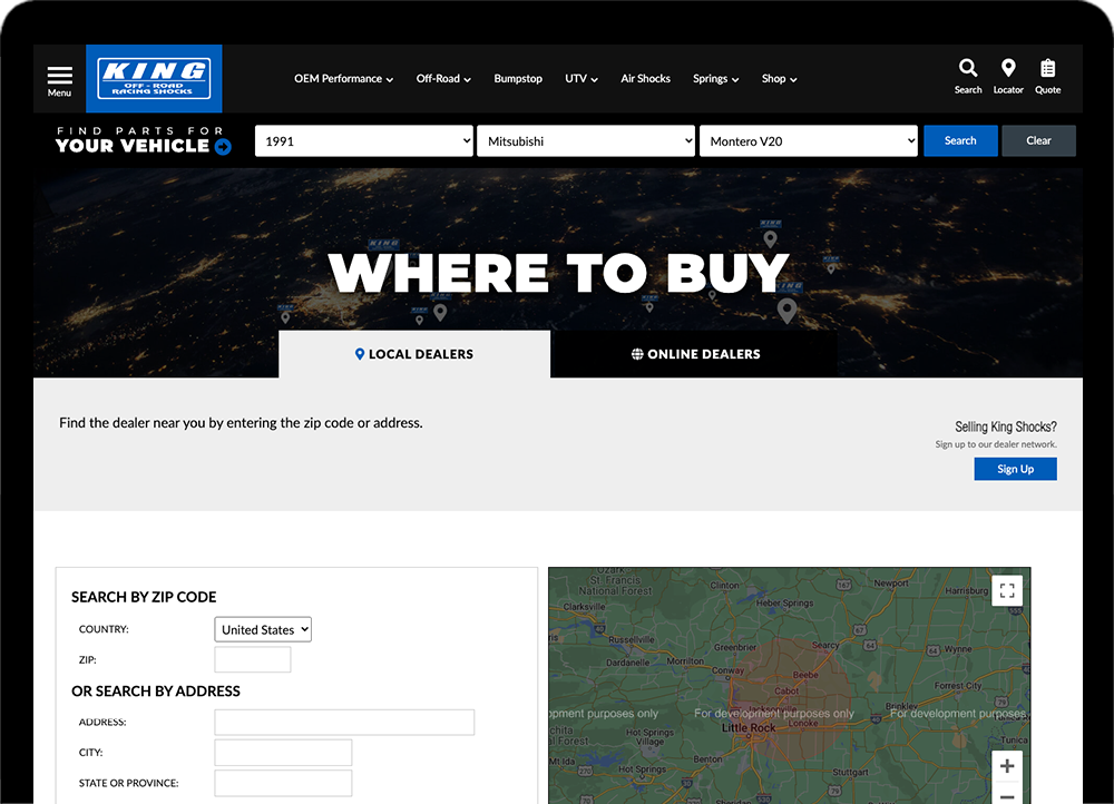 King Shocks came to Web Shop Manager looking for help to up their eCommerce game and web presence along with providing their products directly to consumers. They needed a dealer portal so their customers could find their products and they knew they were going to have to do a complete site revamp.