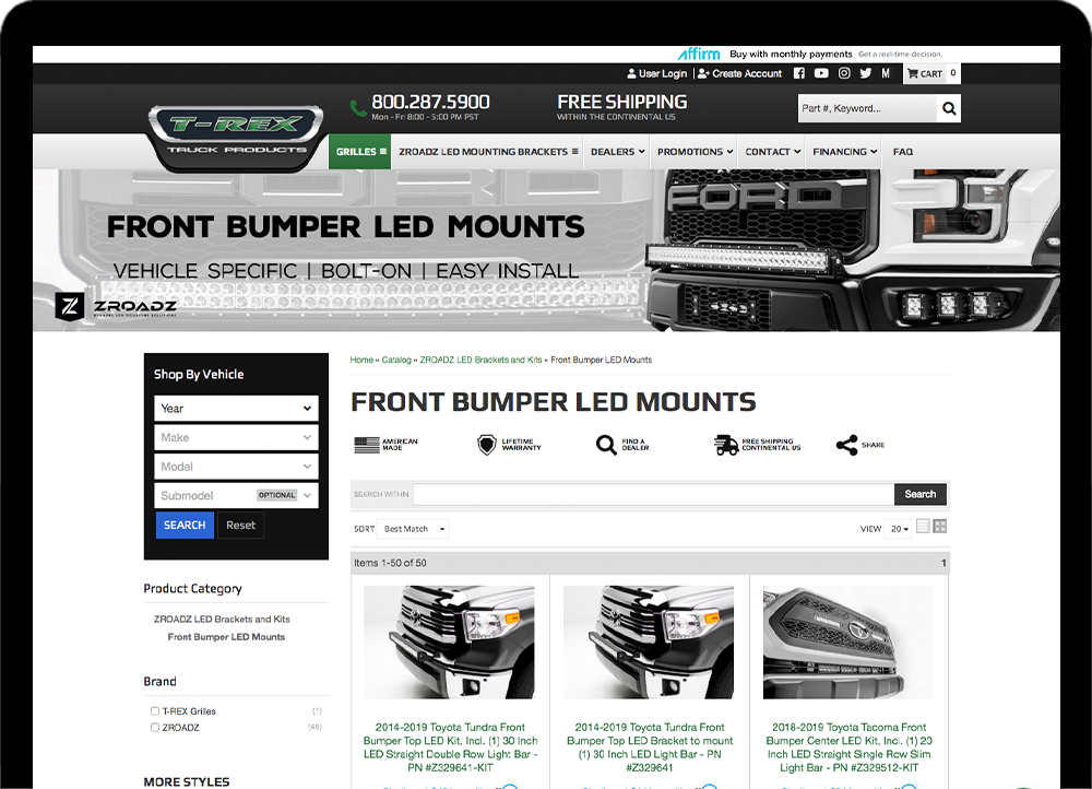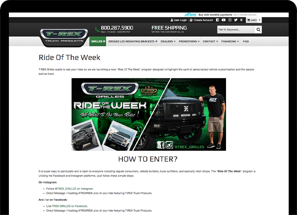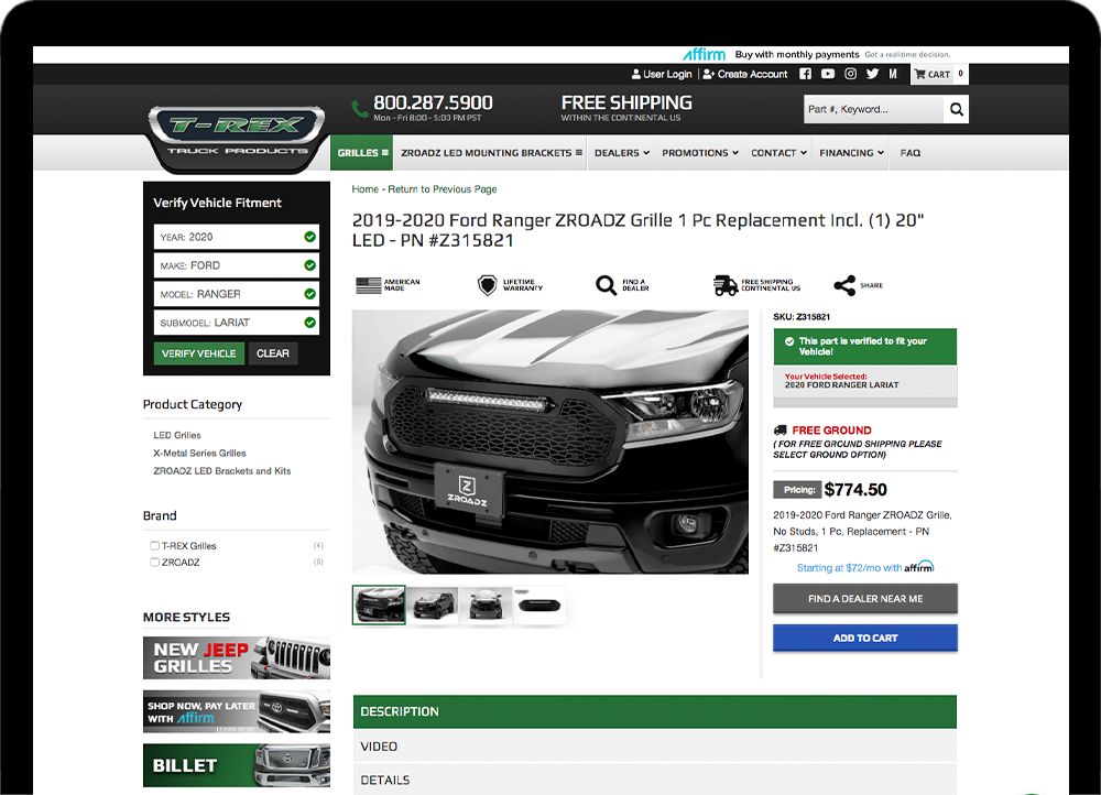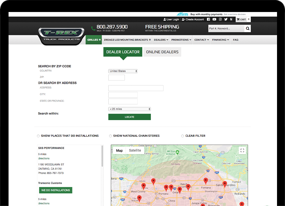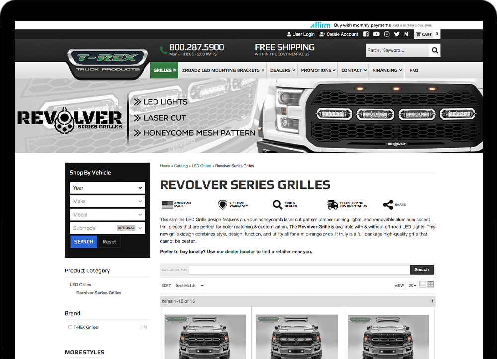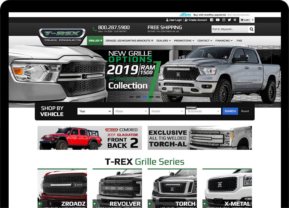 TRex Grilles came to Web Shop Manager looking for help to up their eCommerce game and web presence along with providing their products directly to consumers. They needed a dealer portal so their customers could find their product and they knew they were going to have to do a complete site revamp.